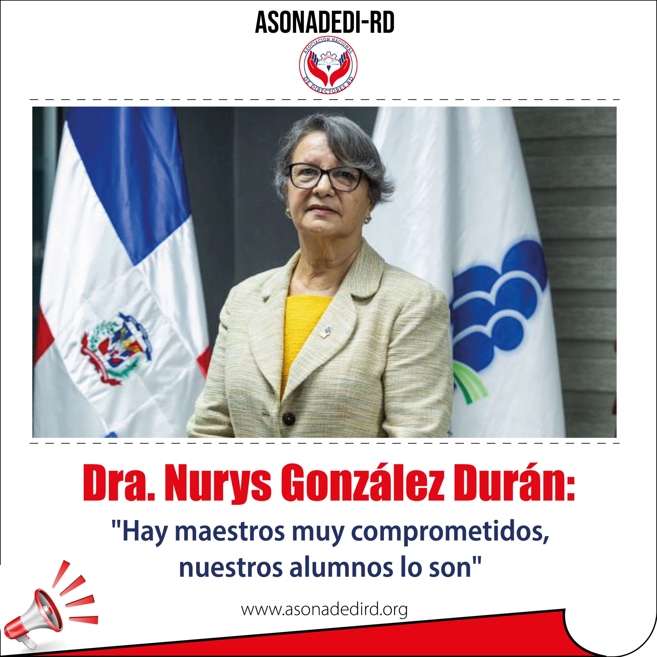 La Dra. Nurys González Durán es la primera rectora del Instituto Superior de Formación Docente Salomé Ureña elegida por concurso público. Ha cumplido su primer periodo en el cargo y presenta próximamente un informe de ejecución del periodo. Ha sido maestra en kinder, primaria, secundaria y universidad. Ahora rectora de universidad, ella que viene de la Escuela Normal, recinto Emilio Prud’ Homme en Santiago.