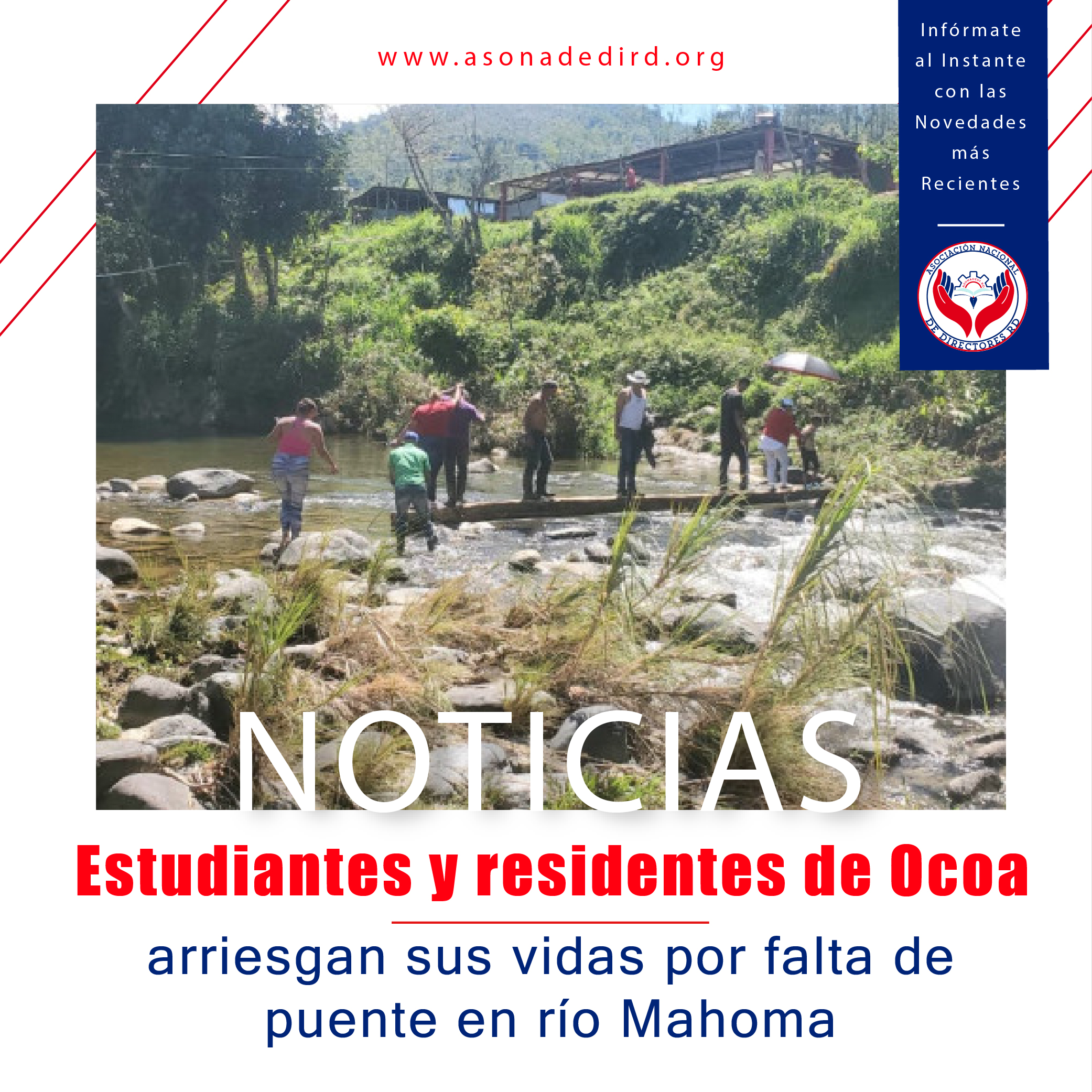 Estudiantes y residentes en la sección Mahoma, provincia San José de Ocoa, arriesgan sus vidas debido a la falta de un puente peatonal seguro.