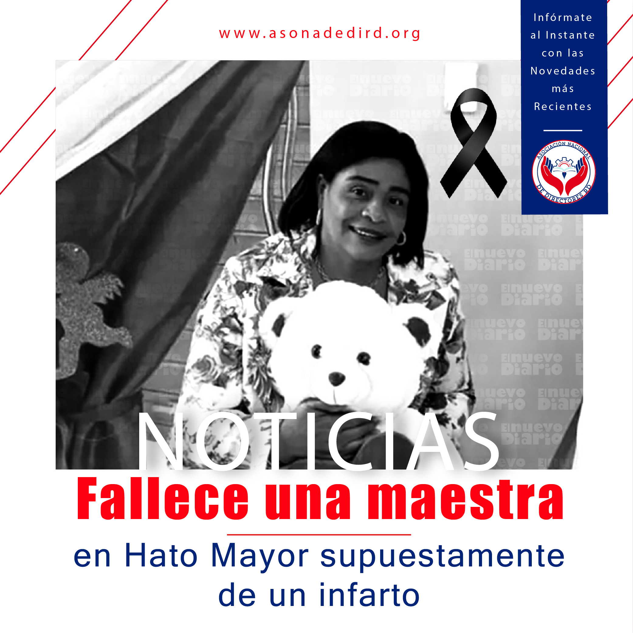 EL NUEVO DIARIO, HATO MAYOR.- La tristeza golpea la clase magisterial de Hato Mayor tras darse a conocer el fallecimiento de la maestra y técnica distrital del área de Lengua Española, Bélgica Santana González.