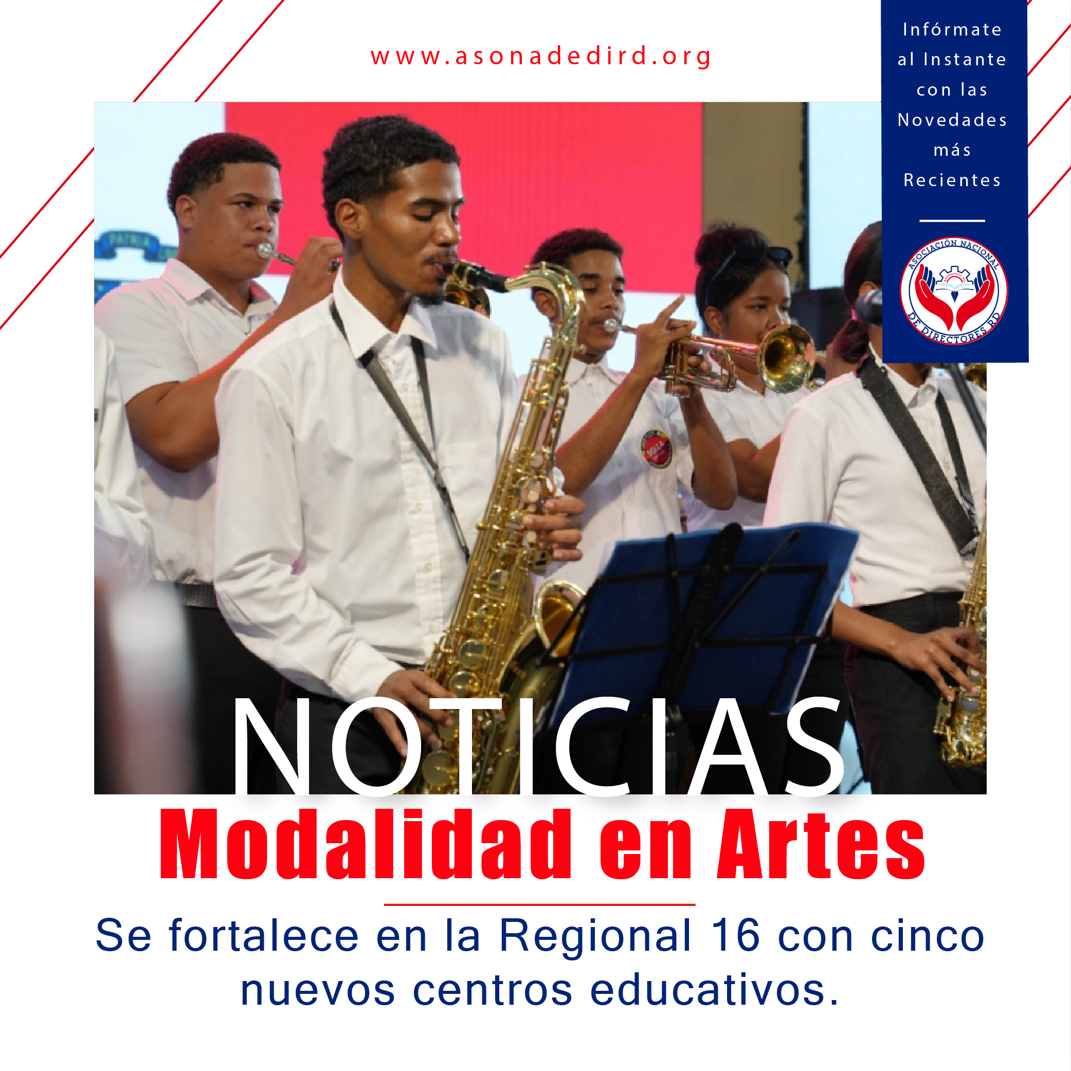 El Ministerio de Educación de la República Dominicana (MINERD) destacó la incorporación de cinco nuevos centros educativos a la Modalidad en Artes en la Regional 16, con lo que asciende a nueve el total de planteles que imparten esta oferta formativa en la demarcación, como parte de su política de fortalecimiento de una educación integral, innovadora y alineada con el desarrollo cultural del país.