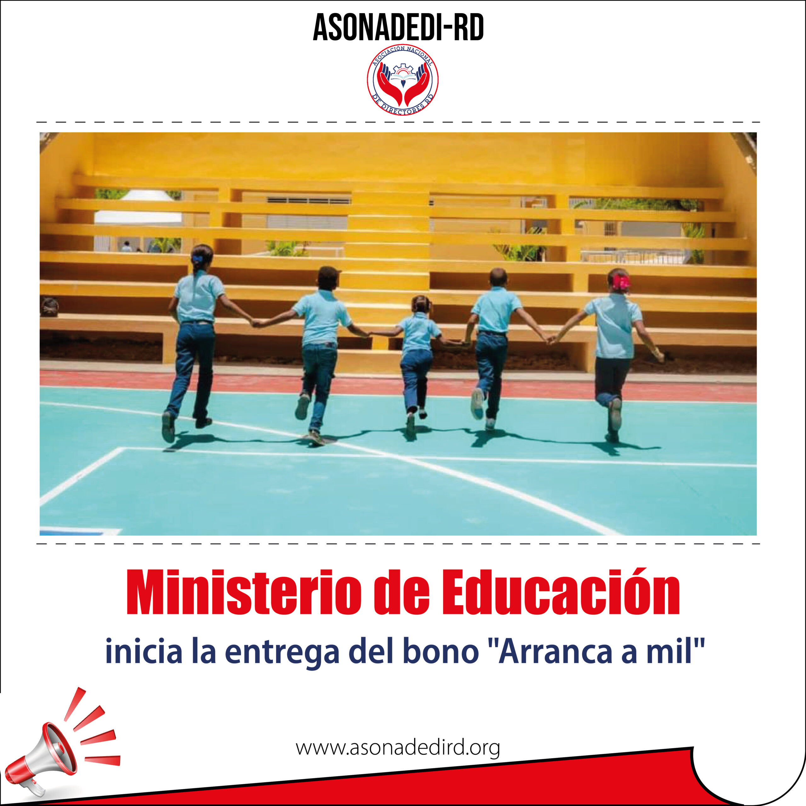El Ministerio de Educación (Minerd) informó que ya inició el desembolso del bono Arranca a Mil por la Educación, que contempla beneficiar a 1,400,000 mil de estudiantes del sistema educativo público preuniversitario.