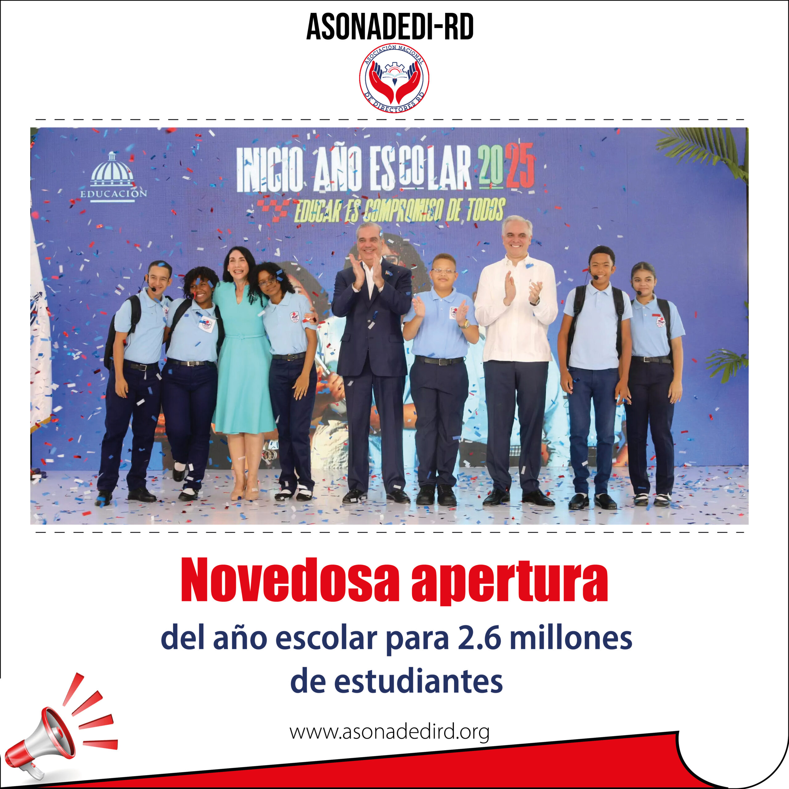 Con 2.6 millones de alumnos convocados, menús listos en el almuerzo escolar y un despliegue político que llevará al presidente Luis Abinader, a la vicepresidenta Raquel Peña y a decenas de funcionarios a planteles en todo el país, arranca hoy el año escolar 2025-2026.